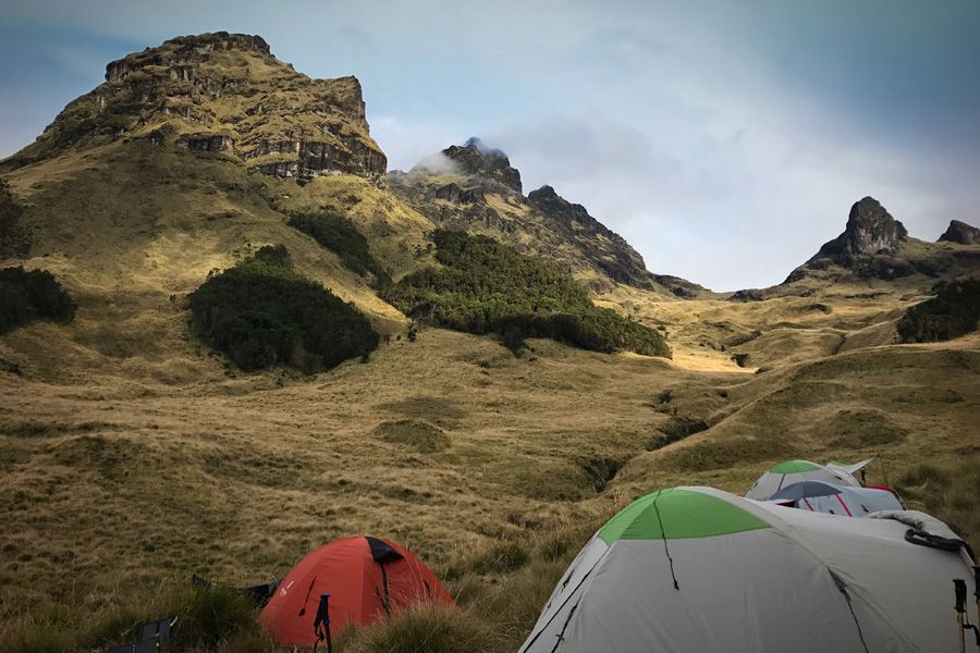 Early morning B/fast and drive 90 minutes to Kagoba, an old research station. Here, your guides and porters will be waiting for you. The trek to base camp will commence and is a good 7-8 hour walk through the grassland and into the rainforest, following bush tracks. Here some porters will have your camp meals and tents ready so you can eat and grab an early night. Note: Extra warm clothing and carabineers are recommended due to extreme drop in temperature and steep ridges on the trek. There are no toilets, so your favorite toilet paper should be in your backpack ready to be acquainted with nature B L D