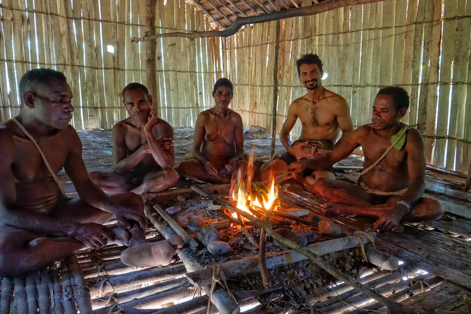 Fishing activities, hunting, food collection, tree house roofs fixing, traditional way of cooking!
